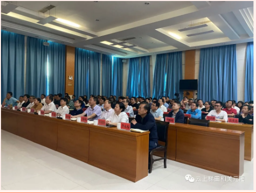 张喆、陈光嵩、彭凤玲、沐文忠、余胜华、吴常禄、王敏等县领导在我县会堂小报告厅收听收看大会。