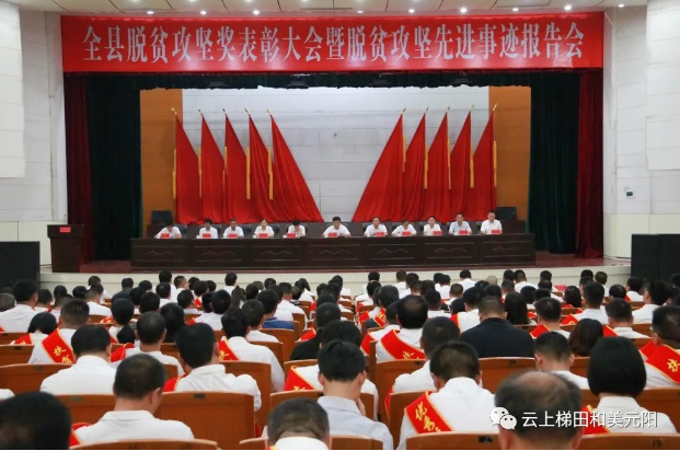 10月16日,元阳县召开2020年度脱贫攻坚奖表彰大会暨脱贫攻坚先进事迹报告会。会议强调,要更加紧密地团结在以习近平同志为核心的党中央周围,以更加昂扬的斗志、更加饱满的热情、更加旺盛的干劲,坚决打赢脱贫攻坚的决胜之战、收官之战,为我县深入实施乡村振兴战略、实现跨越式发展作出新的更大贡献。县委书记李维,县委副书记、县人民政府县长张喆,县委副书记陈光嵩,县人大常委会主任李元,县政协主席彭凤玲等县四套领导班子成员出席会议。