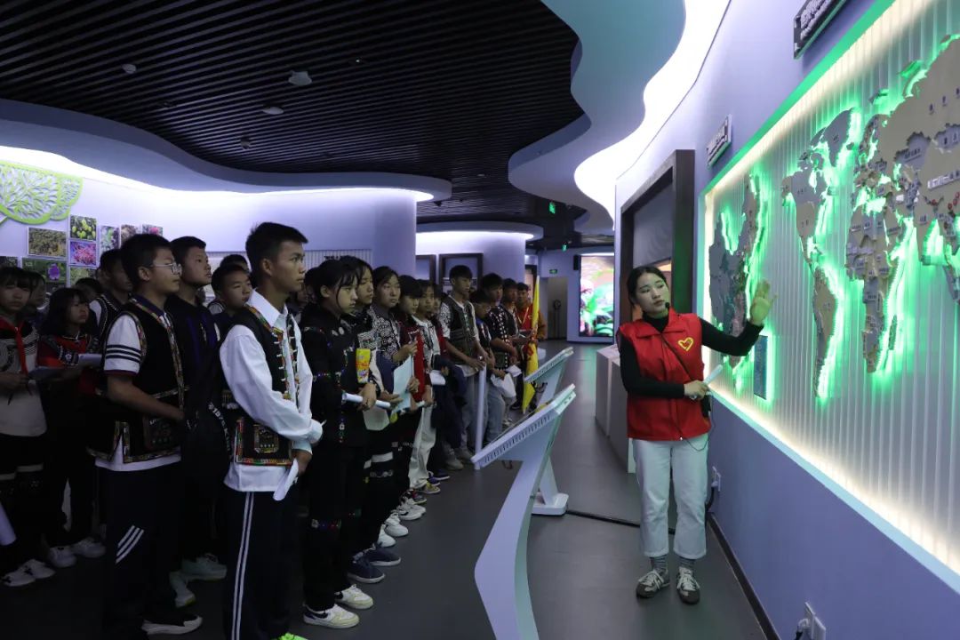 在博物馆内,孩子们沿着精心规划的路线,分组参观各个展区。陈列的古老农耕器具、精美民族服饰和珍贵文物资料,无声地诉说着哈尼族1300年来与自然和谐相处的智慧。孩子们深入了解哈尼族悠久的历史农耕文化和“四素同构”的生态系统,直观感受哈尼族“人与自然和谐共生”的生存智慧,让孩子们在良好的环境中触摸历史。