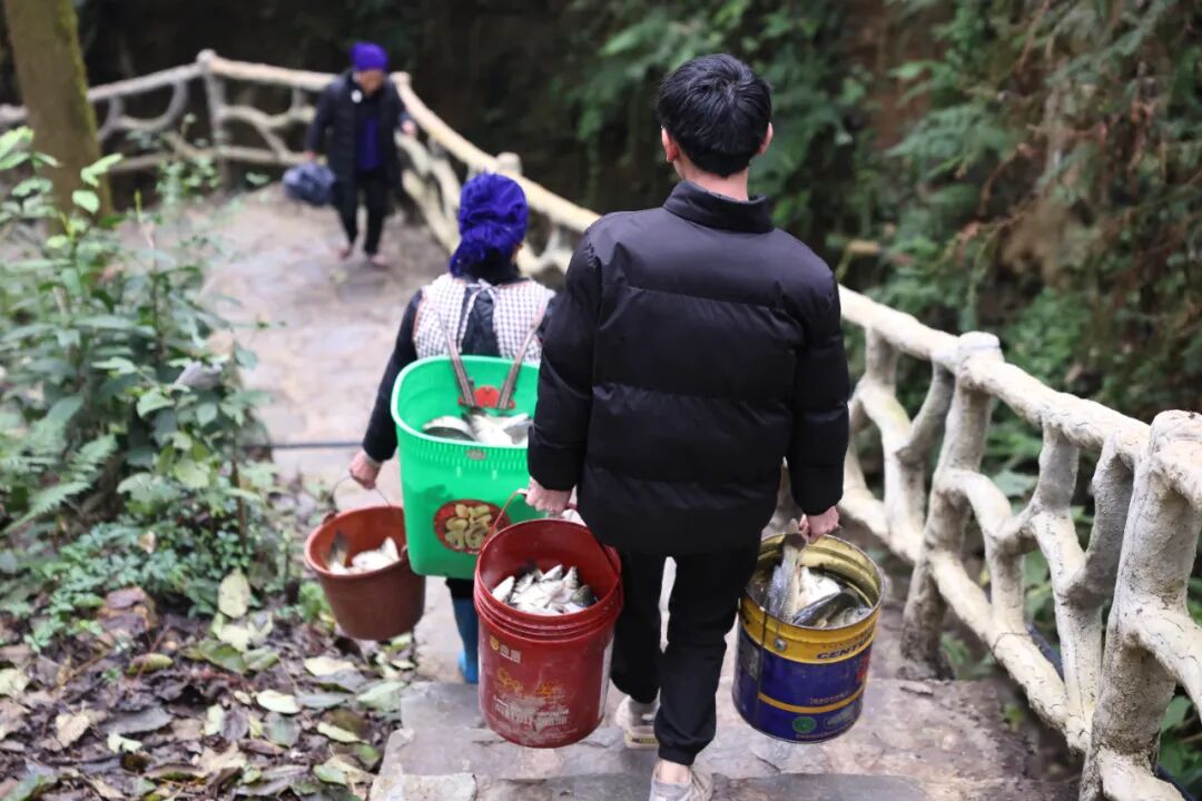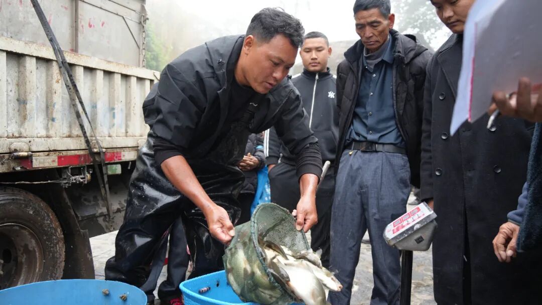 在新街镇多依树村委会普高老寨村的鱼苗发放现场,村民们秩序井然排队、签字、领鱼,眼中满是期待。工作人员逐一核对名单、称重分装,同时细致讲解养殖要点。此次发放按每亩10公斤标准执行,村民领到鱼苗后便小心翼翼运往自家梯田投放。“今天分得30公斤鱼,准备拿去鱼塘放。” 村民朱同奔满脸喜悦;村民马克后也满心期待:“政府发放给了20公斤鱼,2至3个月后就能卖,多了一笔收入。”
