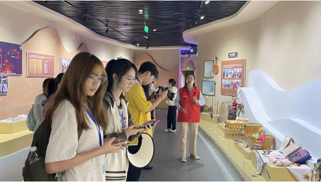 在哈尼梯田文化博物馆,同学们认真聆听讲解员对元阳传统文化以及对元阳哈尼梯田农耕文化的介绍,他们细致聆听每一个故事,凝视每一件展品,通过丰富的艺术品和历史资料,直观感受了元阳哈尼梯田从古至今的辉煌历程及哈尼族文化的独特韵味。