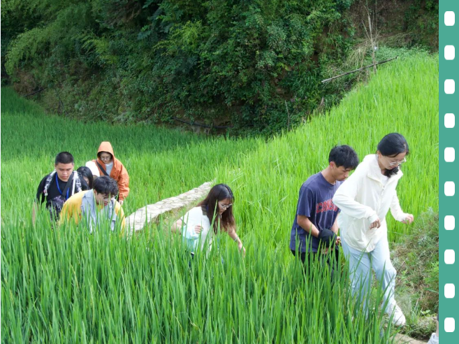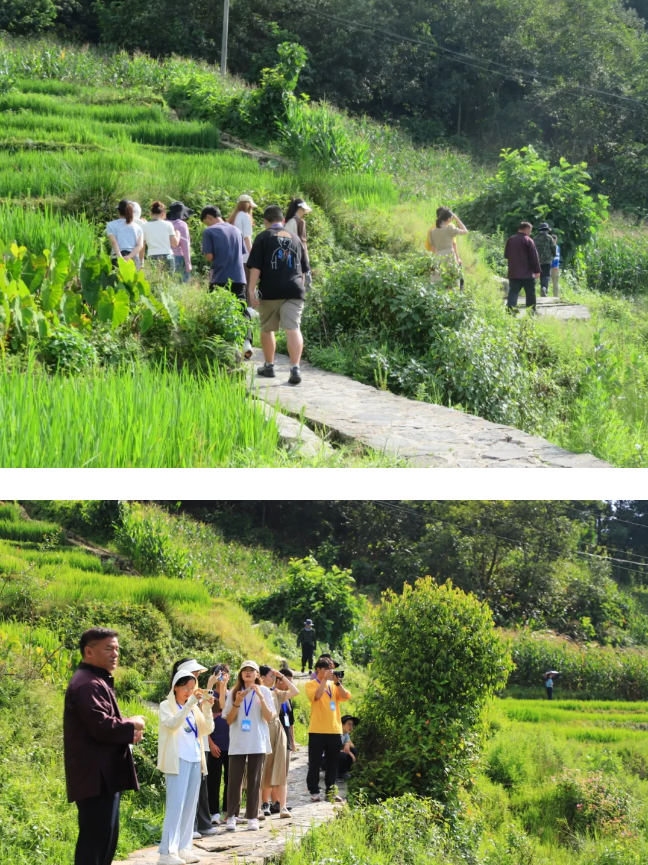 在新街镇阿者科村,朱文珍为学生们讲解了哈尼族的迁徙史、哈尼梯田文化保护与传承、以及“阿者科计划”等乡村旅游发展的成功案例。在古树环绕、梯田云海的映衬下,阿者科村宛如一幅动人的画卷,让同学们流连忘返。他们纷纷拿起手机和相机,记录下这难忘的瞬间。