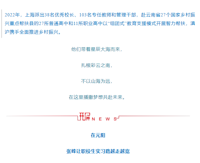 了解情况后,张峰和援滇的同事们着手起了多方面的支援帮扶工作,与红河职业技术学院合作,建立了三个重点专业的中高职贯通合作办学模式,为学生节约一年时间。又通过产教融合、校企合作,学校与元阳县本地企业及上海车企合作定向培养班,共同定制课程,改建实训中心。在中信集团的帮扶下,张峰在元阳县民族职业高级中学新建了电焊实训室和自动化实训室,学校的学生可以在培训后取得上岗证,张峰计划在以后还可以招收在职的人员来短期培训,“拿到上岗证后,这些学生可以到江浙沪等地就业,这样他们的收入实打实地得到了提升。”老师也要培训,张校长说,“我们还让学校的老师到合作的高校还有企业挂职学习,参与企业培训,原本非专业的老师经过学习也逐渐转岗成为专业课老师,到现在已经有12名老师从文化课转到专业课了。”