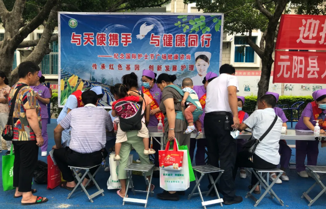 为纪念第110个“5·12”国际护士节,5月12日,县人民医院在人民广场举办“传承红色基因、创新发展护理”大型义诊活动,展示护理队伍良好的精神风貌和职业风范,弘扬“敬佑生命、救死扶伤、甘于奉献、大爱无疆”的崇高精神。