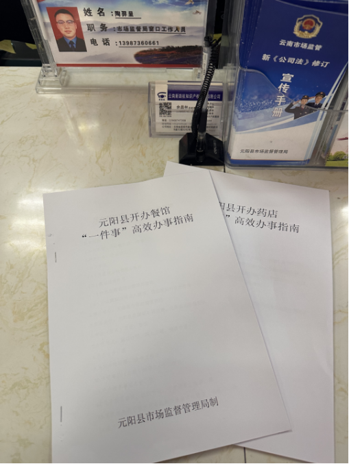 “没想到这么快,不到半个小时,营业执照、食品经营许可证都拿到手了,不用多个部门往返跑,全程帮我办,一个窗口一次就可以领取两套证书!”群众罗女士拿到证后感叹。元阳县政务服务中心市场监管窗口在高效办成一件事单一主题基础上,持续发力,推进“多证联办”,实现营业执照、食品药品经营许可证、公章刻制、发票申领、税控设备变更等事项实现一次办好。