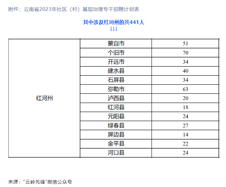 云南省2023年社区(村)基层治理专干招聘!我州招441人