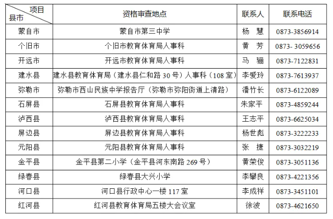 根据《云南省教育厅关于2024年中央特岗教师招聘考试的公告》和《红河州教育体育局关于2024年中央特岗教师招聘考试的公告》有关规定,现将红河州2024年特岗教师招聘资格复审及面试有关事项公告如下: