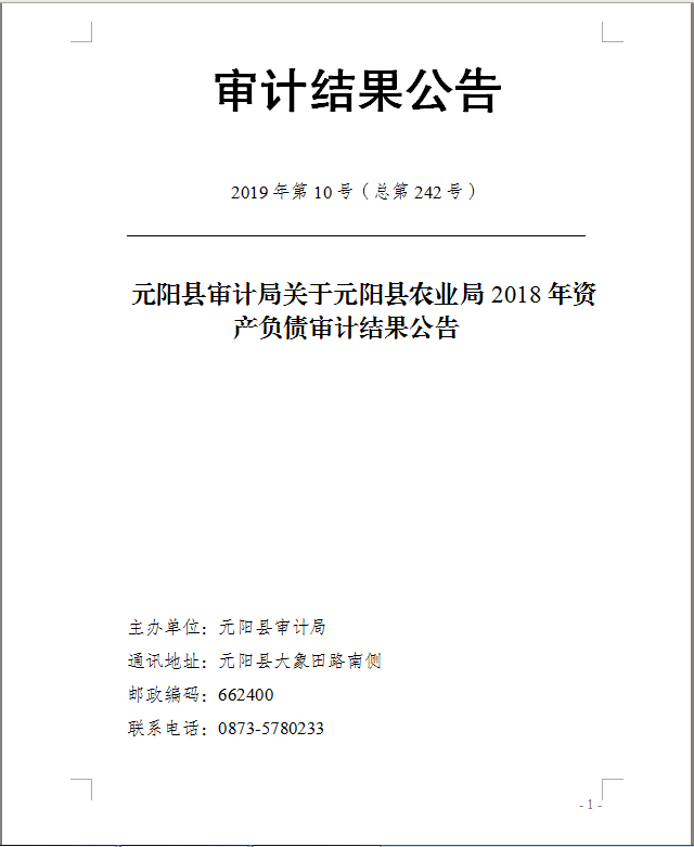 根据《中华人民共和国审计法》第十六条规定,元阳县审计局派出审计组,自2019年2月12日至2019年2月 22日,对元阳县科学技术局2018年度资产负债情况进行了专项审计。现将审计结果公告如下: